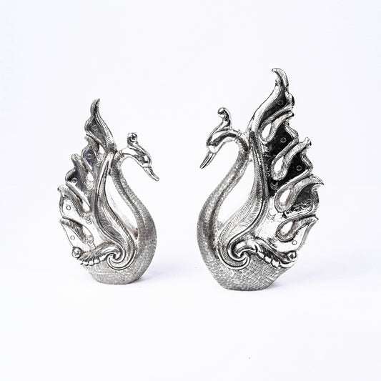 Dancing Silver Peacocks Statue