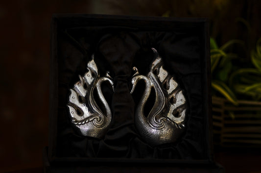 Riyaash Chaandi's silver peacock swan collection is meticulously handcrafted by skilled artisans, ensuring every detail is finely executed. The intricate craftsmanship showcases the dedication and expertise put into creating each piece.