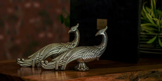 This luxury silver decor showcases intricate detailing, capturing the elegance of peacocks and swans. With lifelike feathers and graceful curves, they stand as timeless, visually captivating additions to your space. Crafted from high-quality silver, Riyaash Chaandi's silver handcrafted peacock swan figurines guarantee long-lasting beauty, resisting tarnishing and wear over time!