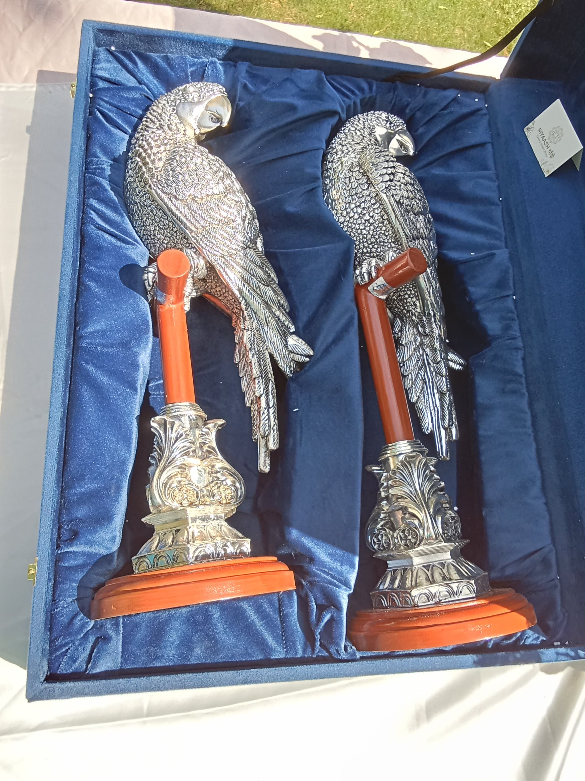 999 Pure Hallmarked Silver Parrot pair on resin wax